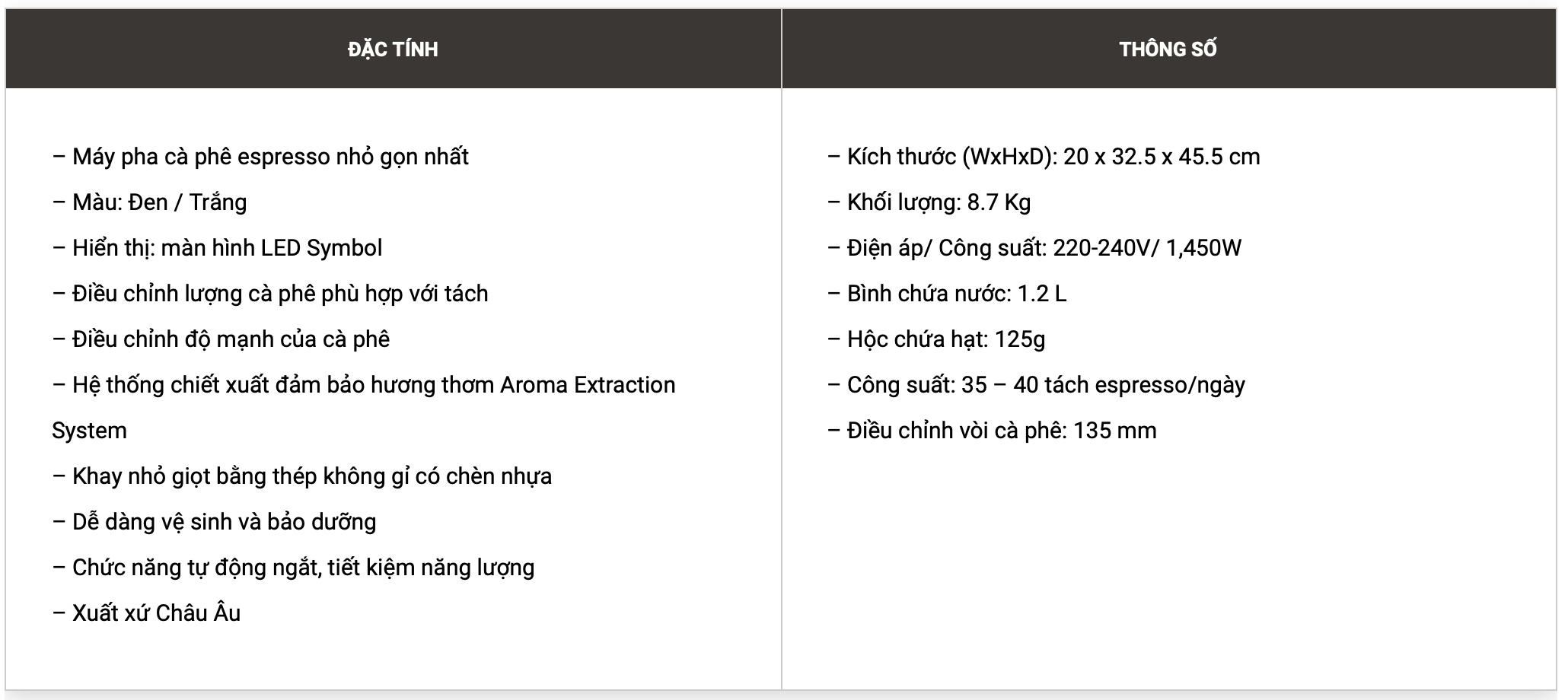 Chắc chắn bạn muốn sự đơn giản? Chương trình làm sạch, tẩy cặn, cài đặt độ cứng nước, nhiệt độ pha và tính năng tự động tắt tất cả các chức năng điều khiển đều dễ dàng thực hiện với hệ thống nút bấm tiện lợi.